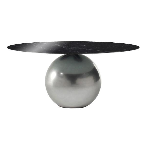 BONALDO table ronde CIRCUS Ø 180 cm base Clouded Chrome (Plateau Marquina brillant - Métal Special et marbre)
