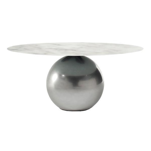 BONALDO table ronde CIRCUS Ø 180 cm base Clouded Chrome (Plateau mat Carrara - Métal Special et marbre)