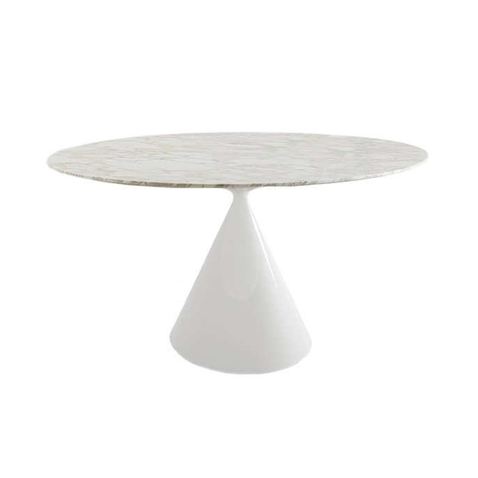 DESALTO table ronde CLAY e marbre (Ø 120 cm / Calacatta or - Base en polyuréthane blanc laqué mat poli / Plateau en marbre)
