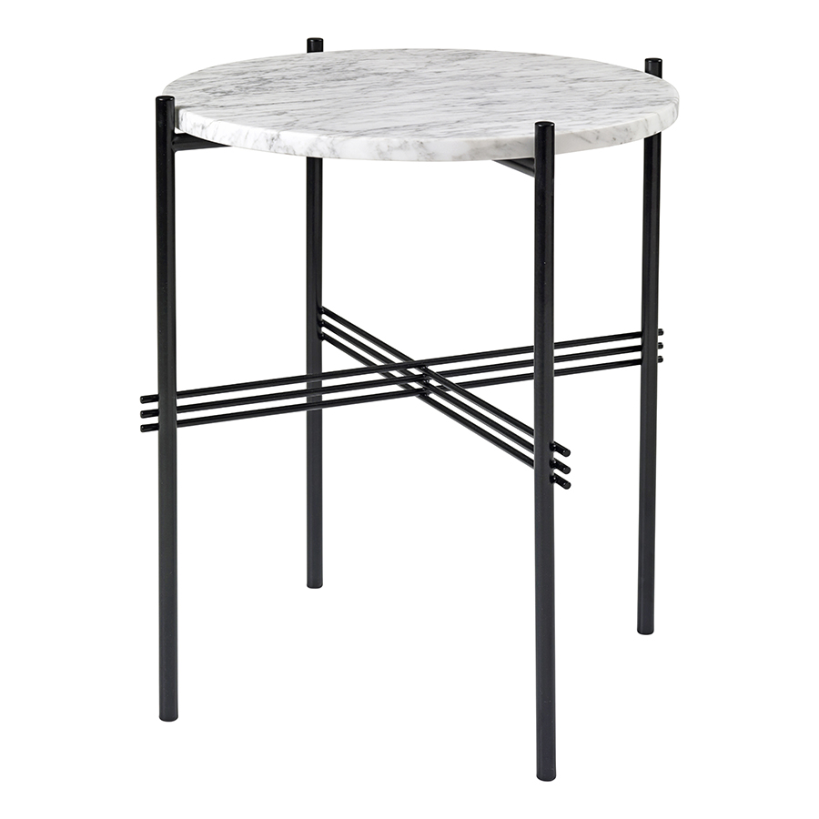GUBI table basse ronde structure noire TS Ø 40 x 51 cm (Blanc Carrara - Marbre et métal)