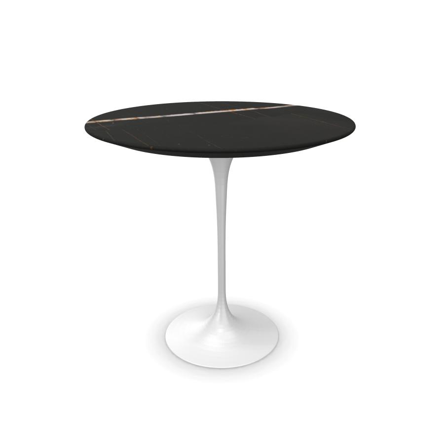 KNOLL table ronde TULIP Ø 51 cm collection Eero Saarinen (Base blanche / Plateau Sahara Noir satiné - marbre et aluminium)