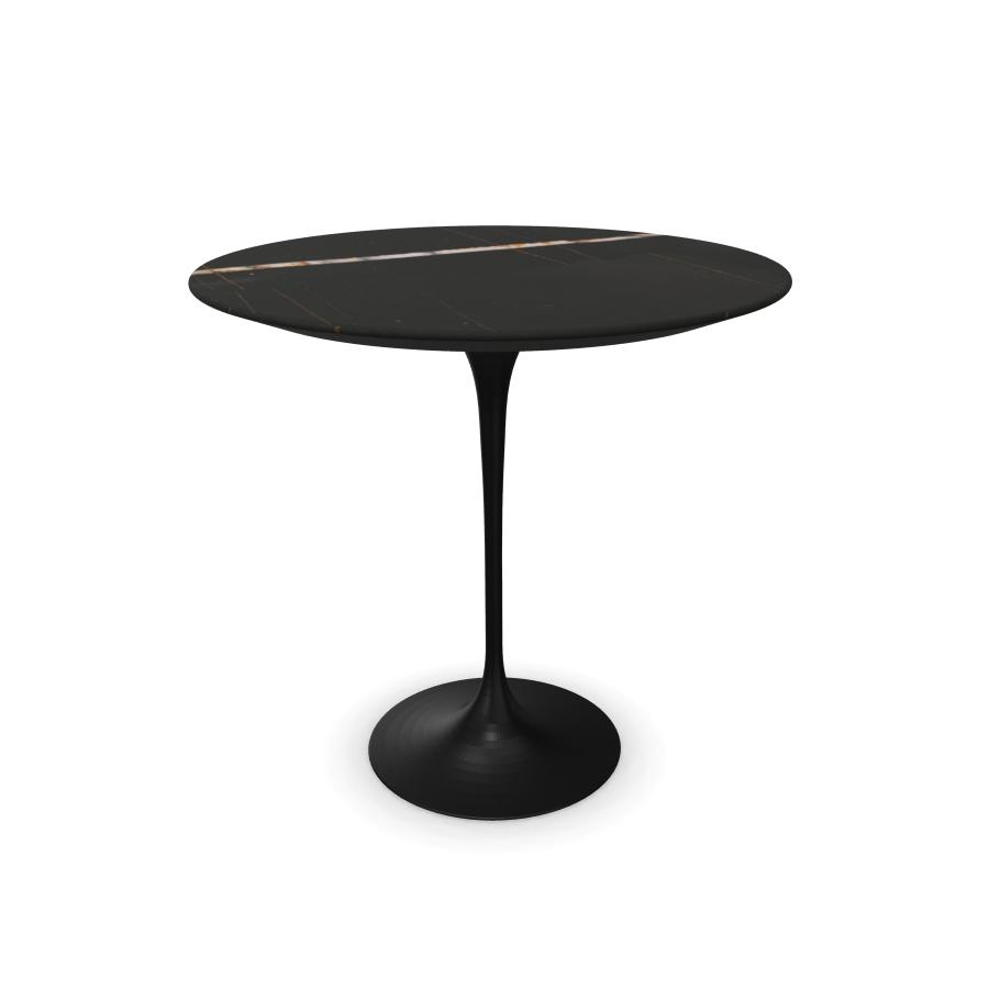 KNOLL table ronde TULIP Ø 51 cm collection Eero Saarinen (Base noire / plateau Sahara Noir satiné - marbre et aluminium)