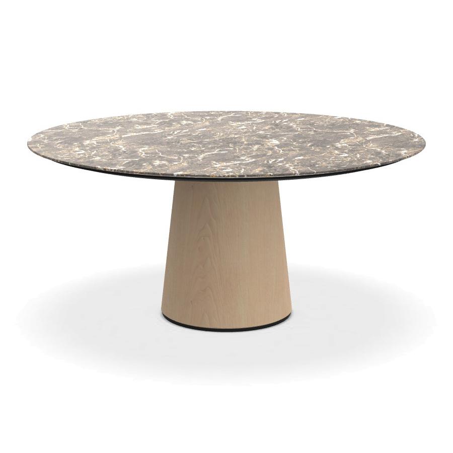 PORRO table ronde fixé avec base en frêne MATERIC Ø 160 cm (Grey Valentine brillant et frêne naturel - Marbre et bois brossé)