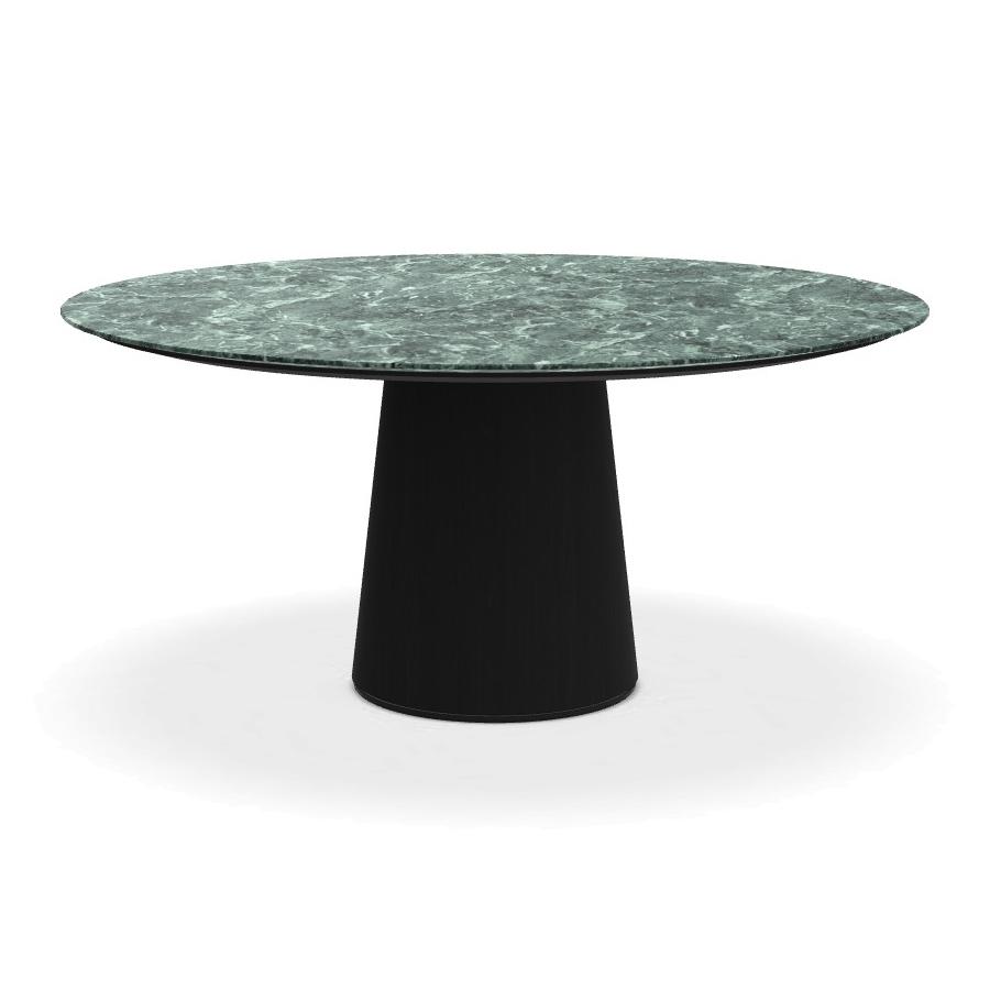 PORRO table ronde fixé avec base en frêne MATERIC Ø 160 cm (Vert ramifié brillant et frêne teinté noir - Marbre et bois brossé)