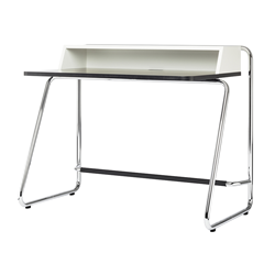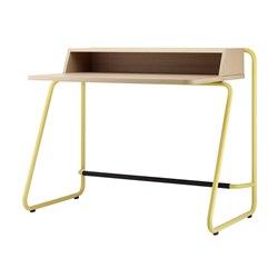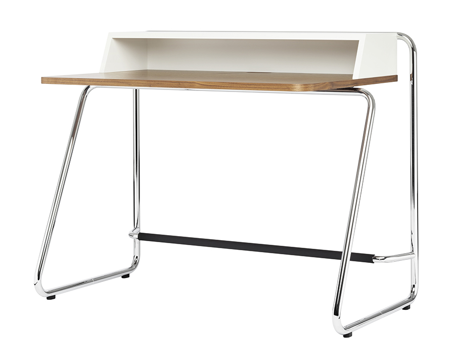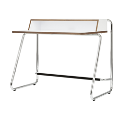 Structure en acier tubulaire, plateau et rehausse en hêtre teinté, chêne et noyer vernis ou huilé, en frêne à pores ouverts, vernis laqué, ou en ThonetDur® ; rehausse livrable également avec finition en vernis laqué selon RAL 9010 (blanc pur) et RAL 9005 (noir foncé). Livraison en 6-8 semaines.