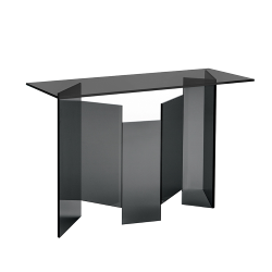 Design de l'architecte Giuseppe Maurizio Scutellà, la console Metropolis Tonelli Design fait partie d'une collection de mobiliers caractérisés par une base et plateau en verre extraclair ou fumé. Cette console au design raffiné et aux lignes géométriques est disponible aussi dans la version avec plateau en céramique en plusieurs finitions et mesures.