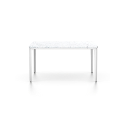 Dans l’esprit de la philosophie du design « super normal » de Jasper Morrison, ses Plate Tables se caractérisent par une apparence modeste, une forme classique et des proportions habilement équilibrées. Disponibles en diff érentes tailles, elles tirent leur charme de l‘interaction réussie des contours subtilement arrondis et des arêtes dessinées avec précision. Le piètement raffiné et le fin plateau en bois massif de haute qualité, en marbre ou en MDF finition époxy s’allient de manière harmonieuse, bien qu‘étant clairement dissociés. Les dimensions des Plate Tables sont coordonnées de façon à ce que plusieurs tables puissent être regroupées pour former une grande superficie ou pour créer divers agencements. Cette flexibilité offre des solutions idéales en termes de taille et de forme pour répondre aux exigences de diff érents intérieurs ou de configurations exceptionnelles de canapés.