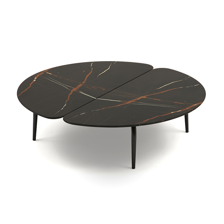 La table basse Graphium Zanotta est inspirée à deux éléments naturels: le graphisme et la symétrie, le marbre et les papillons tropicales. En combinant entre eux ces éléments idéalement opposés, la légèreté d'un battement d'aile et la matérialité de la pierre, on obtient un complément de mobilier au goût contemporain: un solide plateau de marbre naturel soutenu par une mince structure organique en acier.