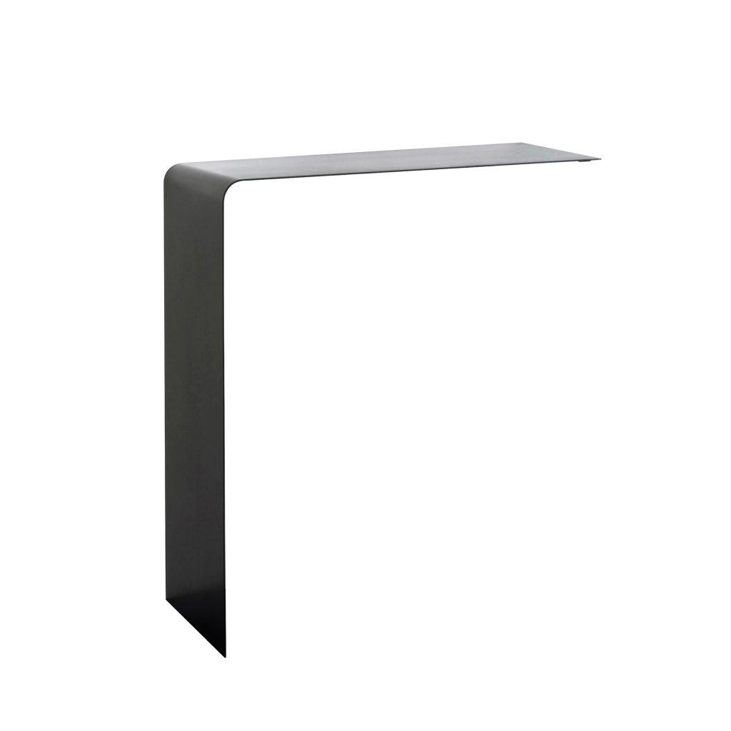 Wing Shelf Zeus est une console murale. Structure en tôle naturelle presse-pliée, traitement phosphatation noir, fixation finale par cire d'abeille. Sur demande version vernie avec poudres époxy noir cuivré sablé. Prévue pour fixation murale soit à droite soit à gauche.