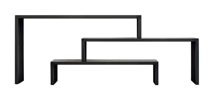 Babilonia Zeus est un set modulaire de trois consoles. Structure en tôle naturelle plié sous pression. Traitement phosphatation noir, fixation finale avec cire d'abeille. En alternative, il est possible de commande sur demande la version avec vernissage par poudre époxy couleur blanc gaufré ou noir cuivré.