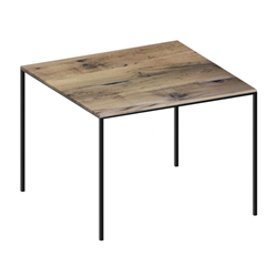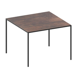 Mini Tavolo 2018 Zeus Noto est une table carrée avec structure en tube carré de 20 x 30 mm, peinture époxy en poudre noir gaufré ou gris micacé. Plateau, épaisseur 10 mm, en HPL finition rouille avec cÅ"ur noir ou en bois de chêne massif antique, 20 mm d'épaisseur, avec une finition en résine transparente.